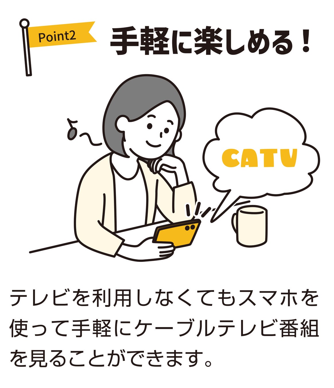 ケーブルテレビに加入していなくてもご利用いただけます。(ケーブルテレビ加入者限定のコンテンツも一部含まれます)