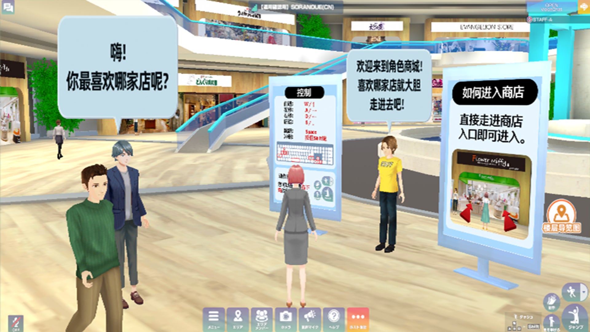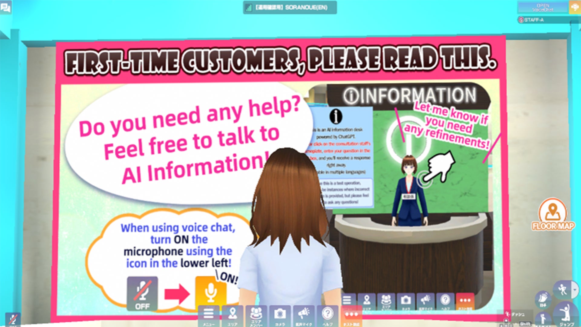 大阪・関西万博の会場での出展を期に、海外から多くのお客様が来場していますので、モール内のご案内には、ChatGPTのAIを使った多言語対応の音声スタッフを配置!日本語だけでなく、英語・中国語・韓国語など、さまざまな言語でスムーズにご案内します。