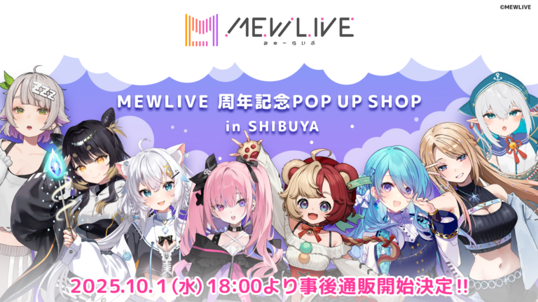 大好評のうちに終了した『MEWLIVE 周年記念 POP UP SHOP in SHIBUYA』が、そらのうえショッピングモール内「MEWLIVEバーチャルエリア」にて本日 10月1日(水)より期間限定で事後通販スタート … 続きを読む MEWLIVEバーチャルエリアにて【事後物販開始‼】